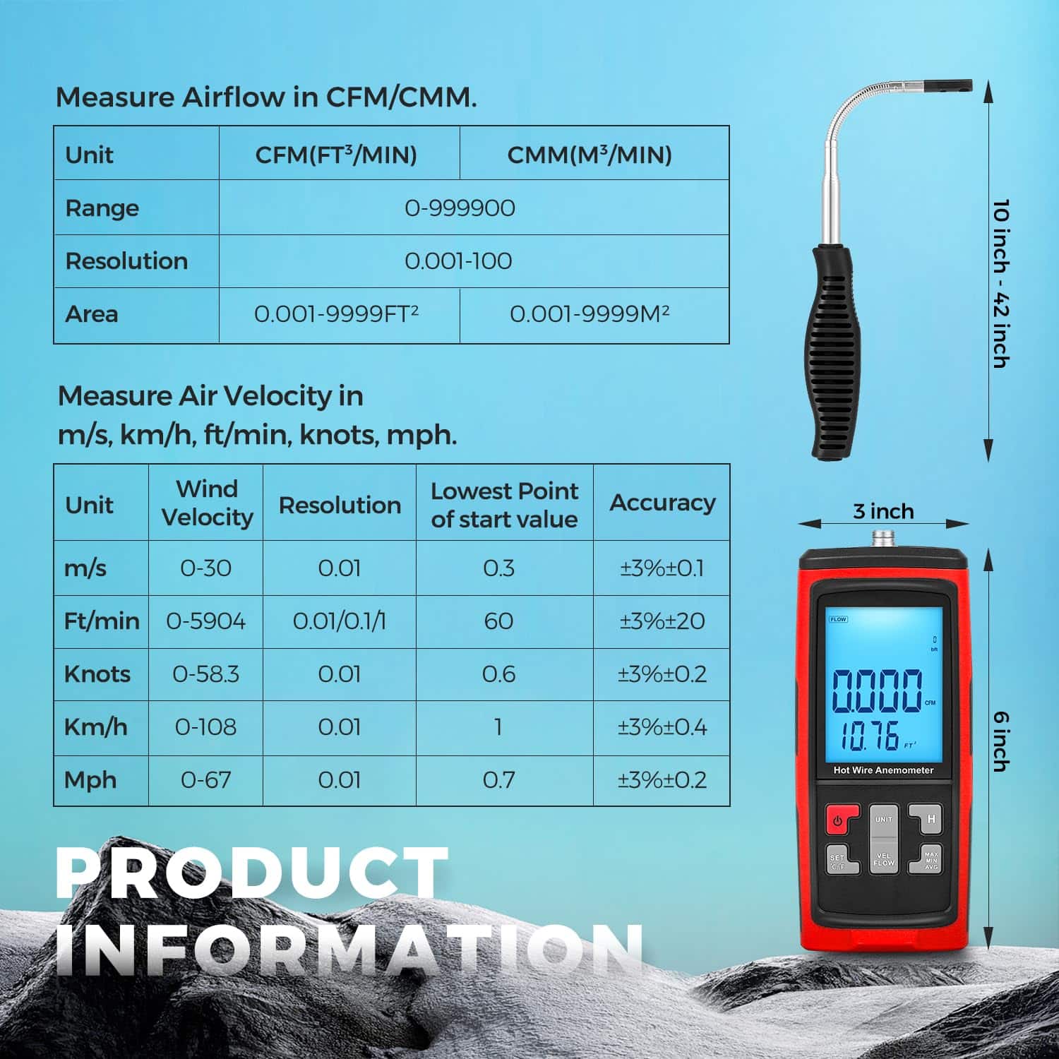 - Pengukuran 3-in-1: kecepatan angin, suhu, dan aliran udara.