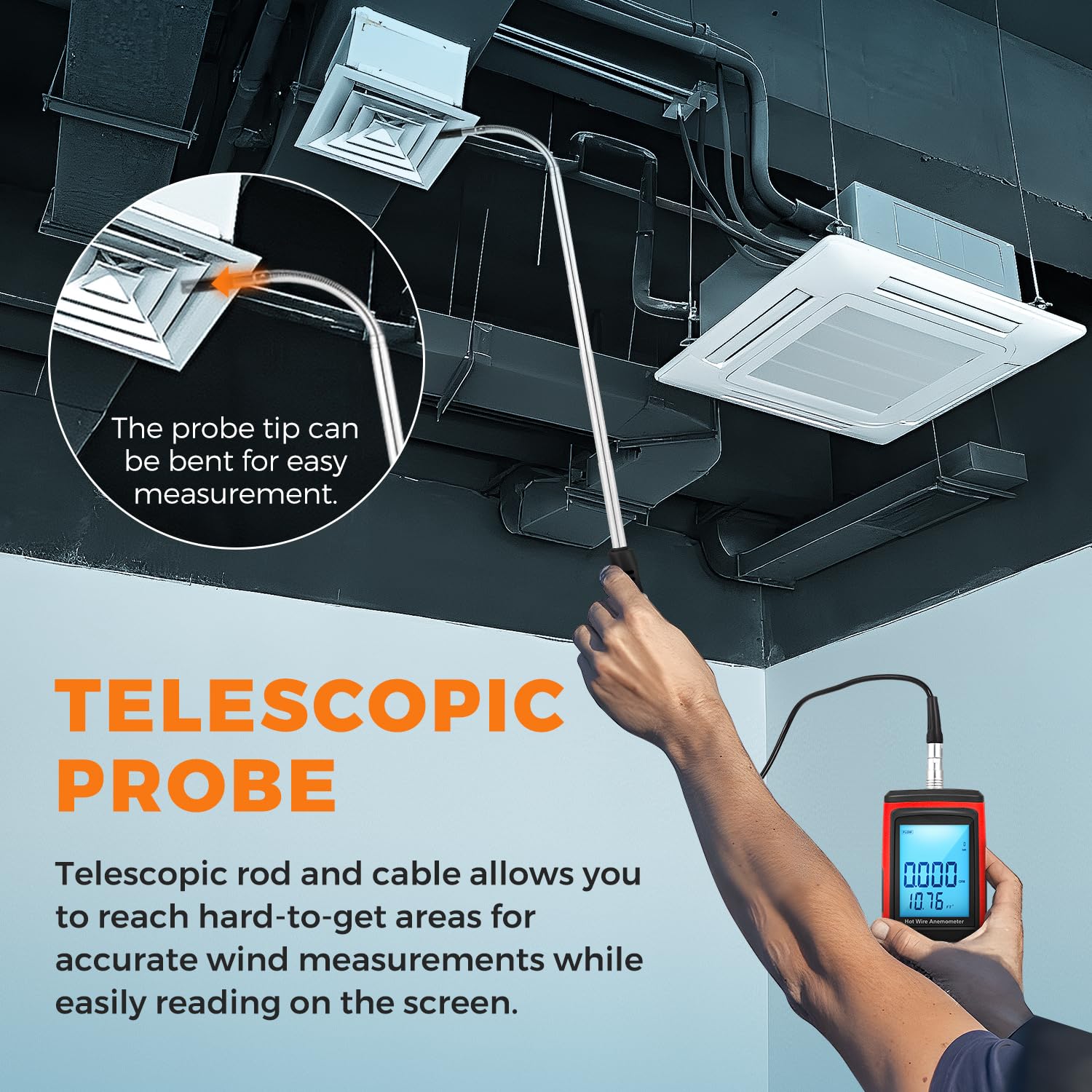 - Probe fleksibel & dapat ditarik, memudahkan pengukuran di area sempit.