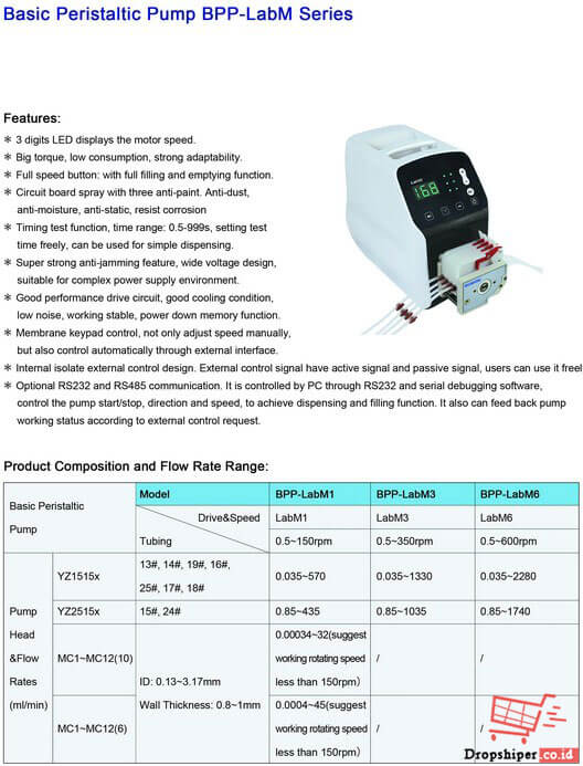 Bergerak pada bidang distributor, kami Dropshiper akan berusaha semaksimal mungkin menyediakan alat ukur solusi Kebutuhan dengan product baik digital ataupun analog. Untuk informasi Basic Peristaltic Pump BPP-LabM Series sejenisnya bisa anda lihat pada Kategori Peristaltic Pump, Pompa Peristaltik, kebutuhan Harga maupun Formalitas penawaran serta Stock, Silakan langsung saja hubungi KONTAK yang tersedia, baik telepon, whatsapp atau email.