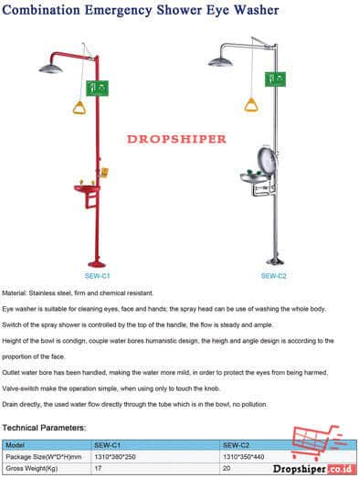 Combination Emergency Shower Eye Washer SEW-C1 Series ini sangat ideal digunakan pada industri kimia, laboratorium, universitas, dan masih banyak lainnya. Emergency Shower Dan Eye Wash SEW-C1 Series ini terbuat dari bahan stainless stell, sehingga tahan terhadap bahan kimia. Dan Emergency Shower Dan Eye Wash SEW-C1 Series ini mempunyai sakelar katup yang membuat pengoperasian menjadi sederhana. Selain itu, Emergency Shower Dan Eye Wash SEW-C1 Series ini dilengkapi dengan lubang air outlet, sehingga membuat air lebih ringan, untuk melindungi mata dari dirugikan. Dengan adanya beberapa fitur pada Eye Wash Station SEW-C1 Series ini dapat membuat pengoperasian sederhana untuk semua pengguna.