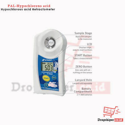 Hypochlorous Acid Refractometer PAL-Hypochlorous acid adalah alat ukur uji dirancang khusus untuk mengukur konsentrasi asam hipoklorit yang digunakan sebagai pembersih. Asam hipoklorit (HClO) adalah suatu asam lemah yang terbentuk ketika klorin dilarutkan dalam air. (HClO) merupakan zat pengoksidasi yang kuat dan dalam proses oksidasinya, ia tereduksi menghasilkan gas klorin. Asam hipoklorit biasanya digunakan sebagai zat pemutih, pengawabau dan anti bakteri atau pembunuh bakteri. Dalam pengolahan air, asam hipoklorit merupakan pembersih aktif dalam produk berbasis hipoklorit (misalnya digunakan di kolam renang. Oleh karena itu, Dengan menggunakan Alat Refraktometer PAL-Hypochlorous acid ini Anda dapat menentukan konsentrasi asam hipoklorit untuk kepentingan tertentu.